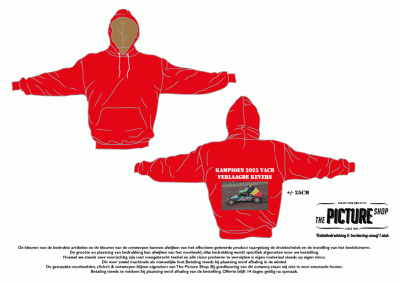Rode hoodie M x1, XXL x4 €35,00/stuk